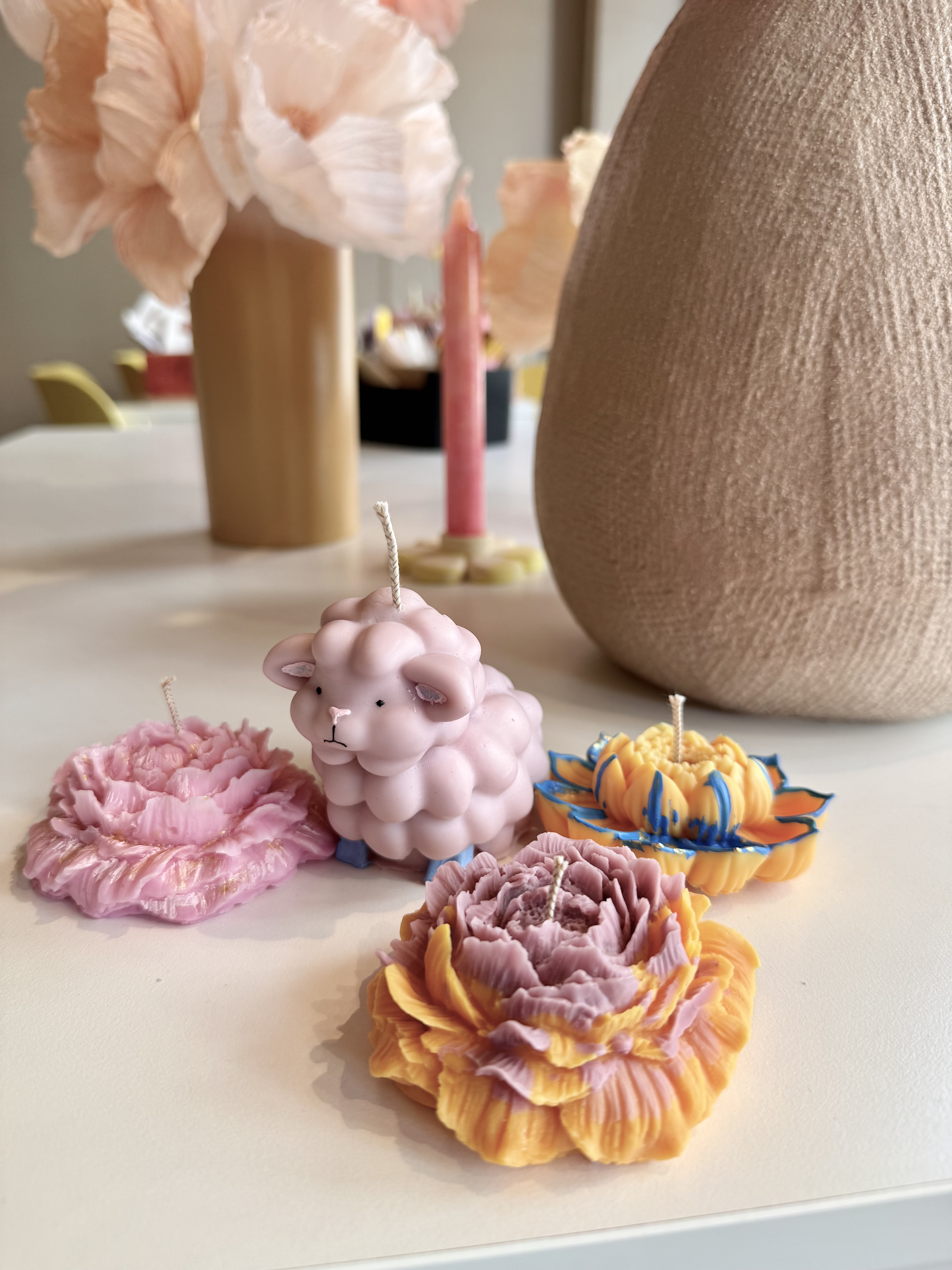 Hos BloomBoom Studio kan du enten dekorere vores færdigstøbte lys eller støbe dine egne figur- eller duftlys helt fra bunden. Begge dele er rolige, kreative processer, hvor du kan male, marmorere eller eksperimentere med farver og teknikker – og til duftlysene kan du blande din helt egen signaturduft med vores lækre duftolier.
