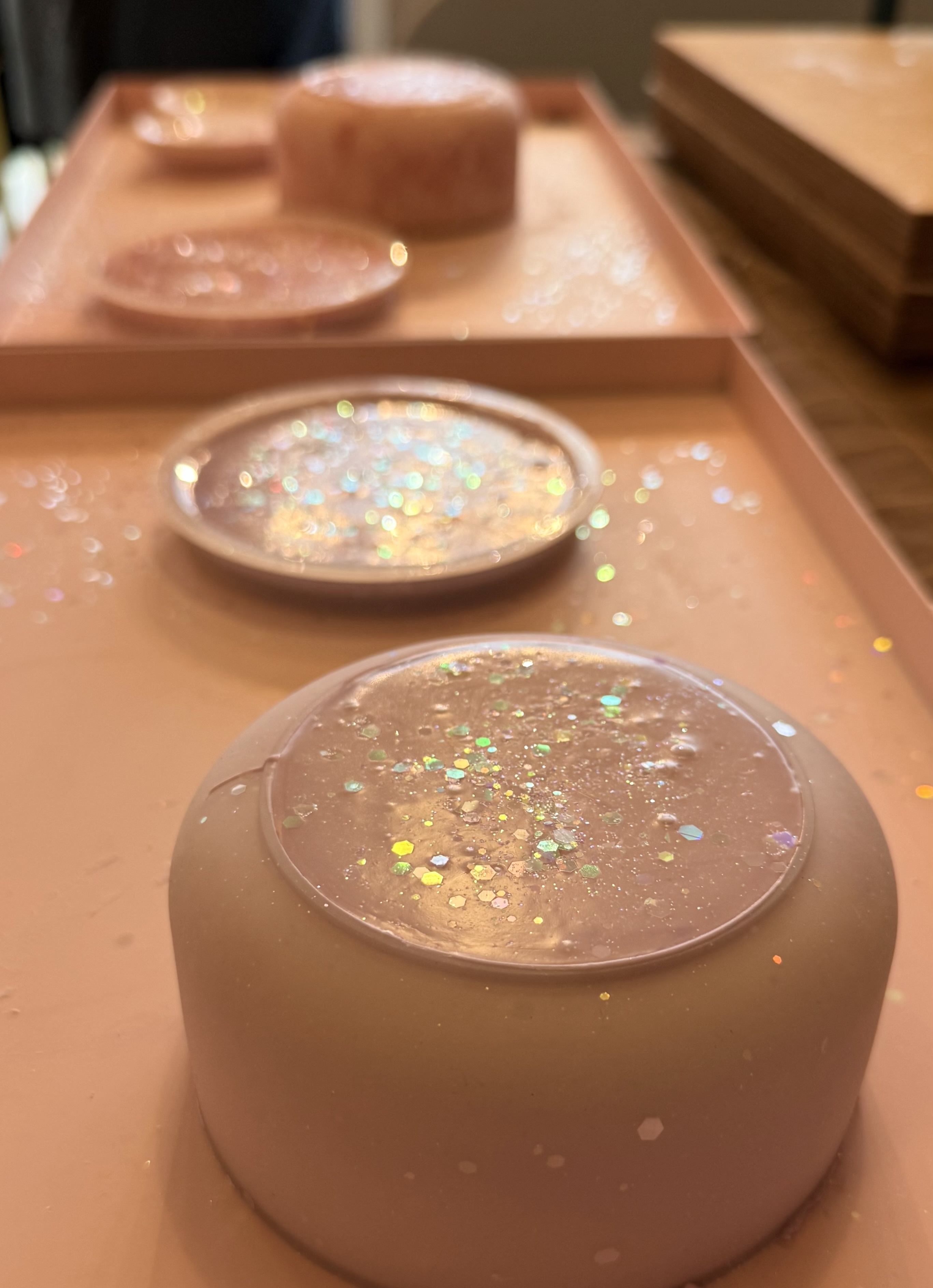 Det er vandbaseret, miljøvenligt og nemt at arbejde med – også for dig, der aldrig har prøvet det før. Jesmonite hærder hurtigt, så du kan tage din kreation med hjem samme dag.