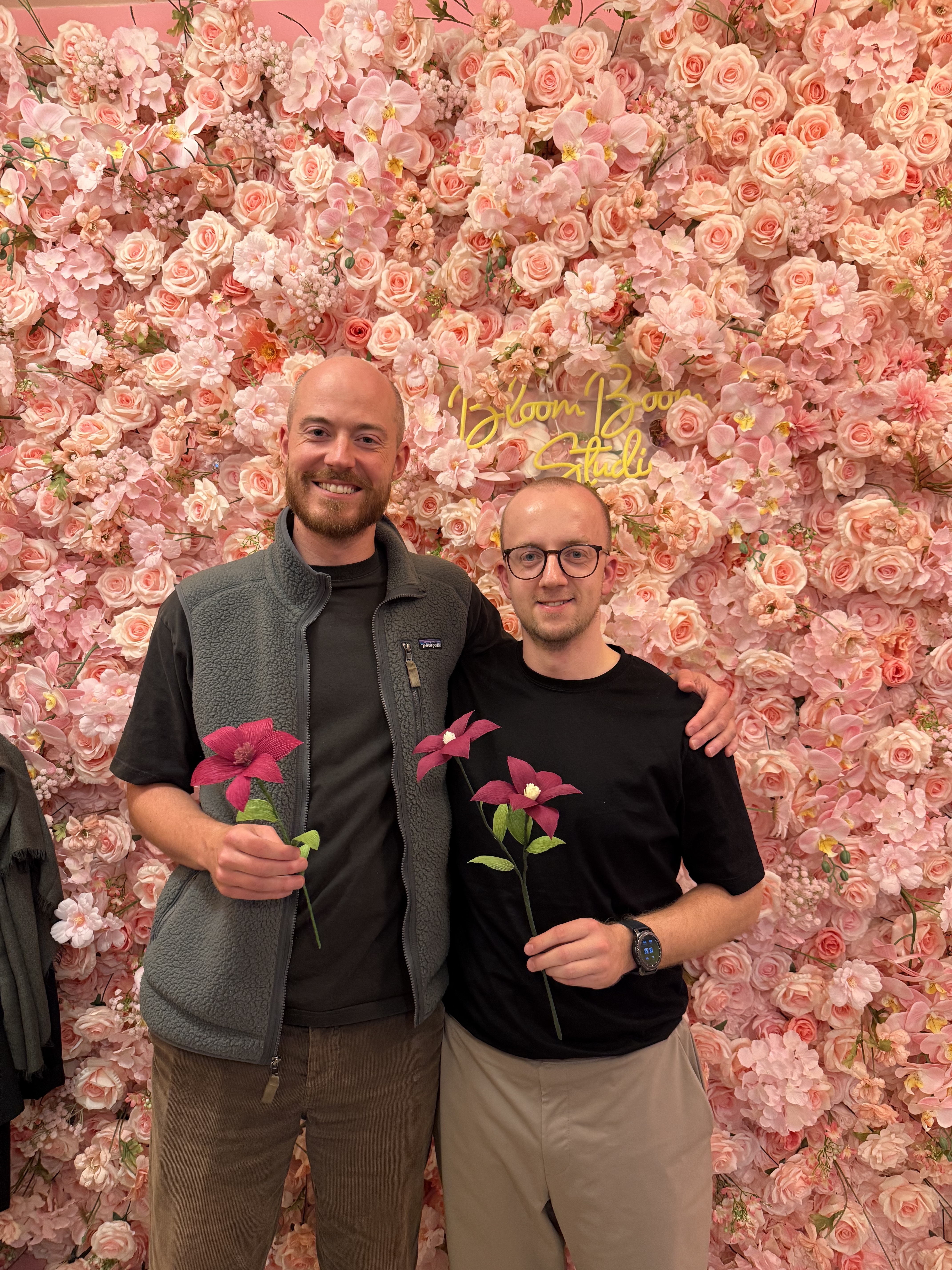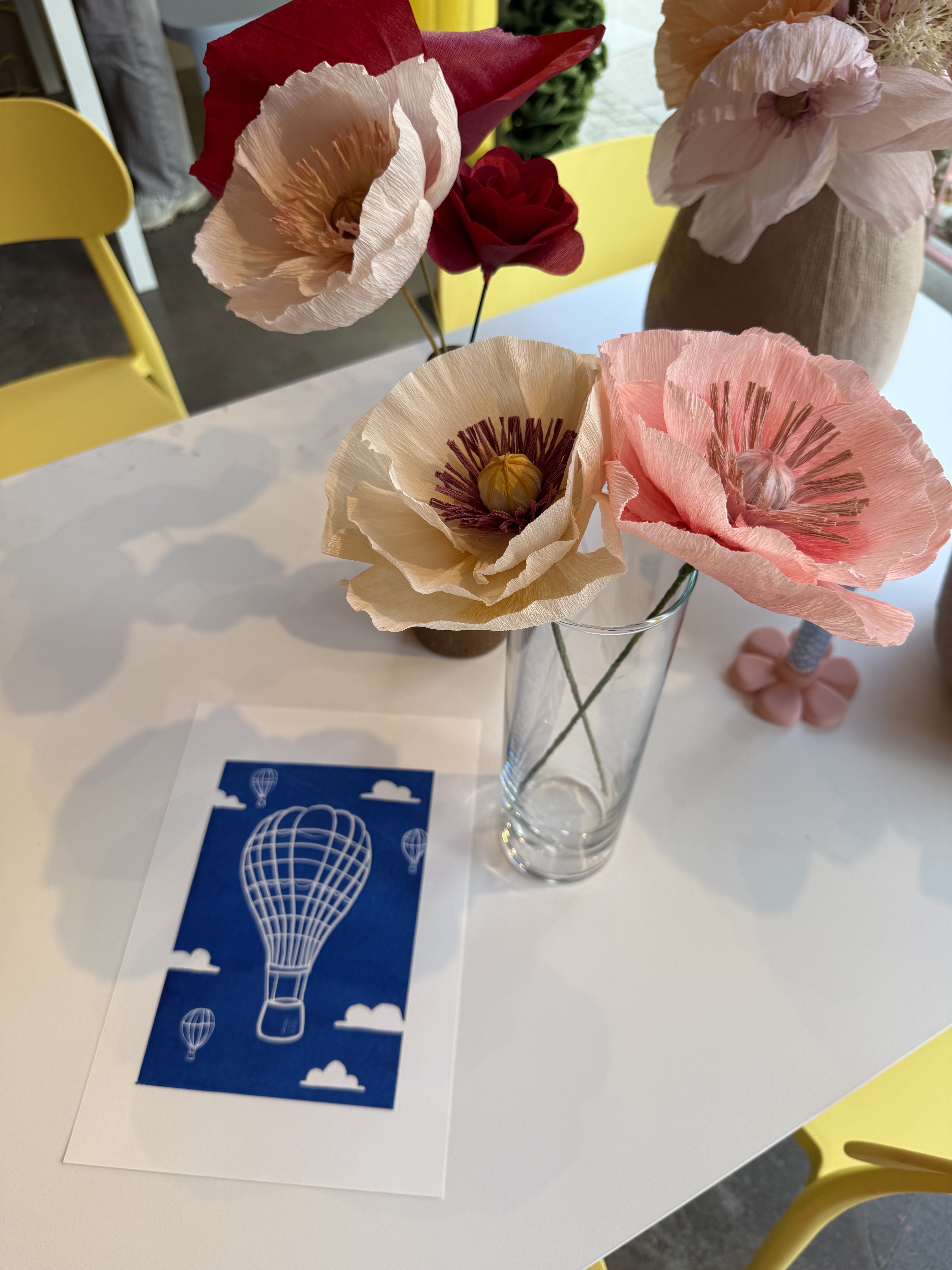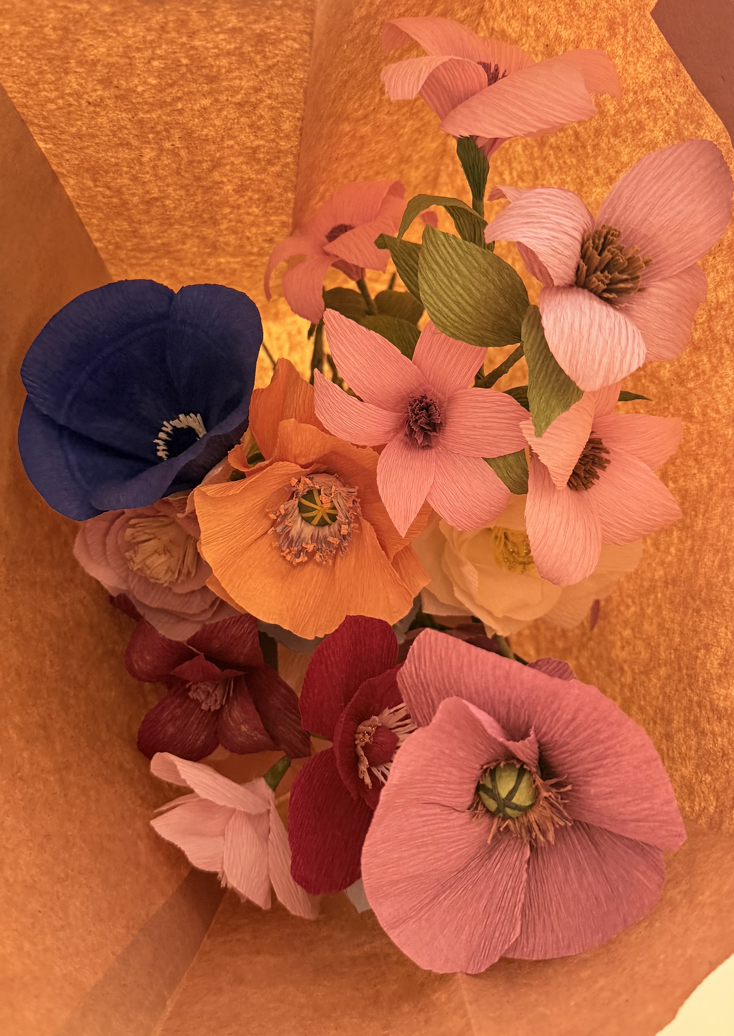 Vi stiller alt til rådighed: italiensk crepepapir i skønne nuancer, lim, værktøj, stilke og skabeloner. Du vælger selv farver og udtryk – og vi hjælper dig godt i gang.