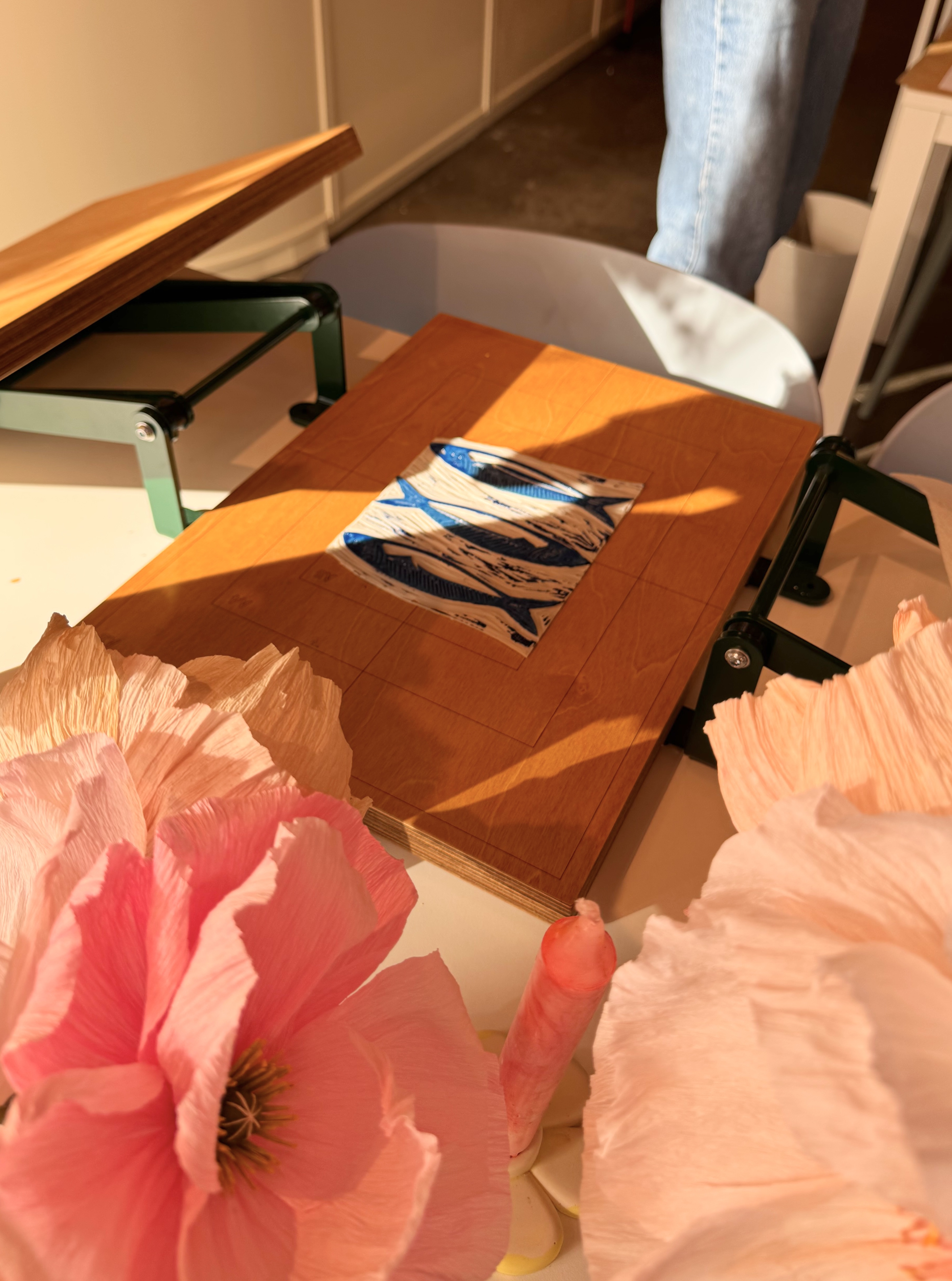 Vi bruger softcut, som er lettere at arbejde med end traditionel linoleum, og guider dig trygt gennem processen – fra skitse og skæring til prøvetryk og dine endelige værker på lækkert papir. Teknikken kræver ingen erfaring – kun lidt tålmodighed og lysten til at prøve noget nyt.